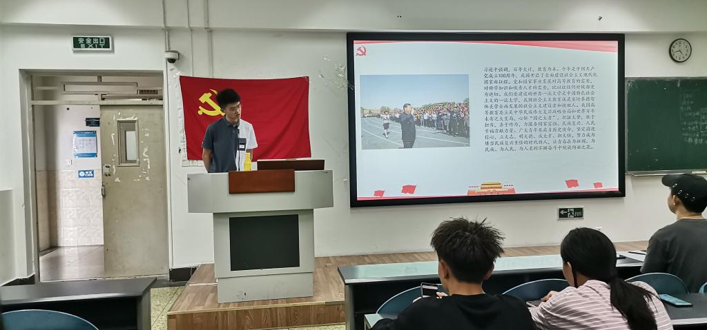 5月18日下午4:20,开元体育官方网站登录入口计算机(职)专业学生党支部在十教B203成功组织开展政治学习分享会。本次分享会以“奋斗百年史、启航新征程”为主题,由丁家雄同志主持,舒丽红同志主讲。支部入党积极分子、发展对象及党员同志积极参加,学习氛围浓厚。
