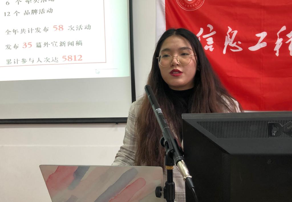 会上,第七届团委学生会李鸿翔、范芸菲、李自等九名主席团成员紧紧围绕2020年度学生工作中心思想,总结了个人和分管部门在疫情防控、思想引领、实践创新、学风建设、权益服务、舆情防范、组织提升、团干部培养等方面协助团委老师开展的一系列卓有成效的活动和工作,对2021年的工作进行了规划。其中,李自的“凝聚奋进新时代的新风力量,弘扬文明实践志愿服务精神”主题汇报,思路清晰、特色突出;范芸菲谈到,为喜迎建党100周年,将2021年思想建设的主题确定为“聚焦思想引领,党旗所指,团旗所向”,打造“团”字号特色阵地和“青”字号育人功能,让人印象深刻。
