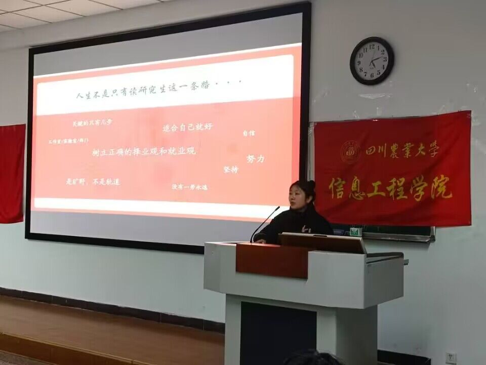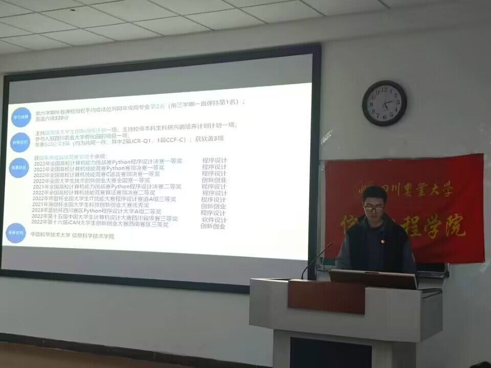 余承骏以沉稳的语调,述说着他保研之路的曲折与坚持。在他的话语中,蕴含着对知识的渴望和对未知的勇往直前。谢乐则如一阵清风,轻盈而自信,分享着自己在求学路上的一路奋斗。两位保研师兄师姐的言辞仿佛是晨曦中的一缕暖阳,给每个在求学路上奋发向前的同学以鼓舞。