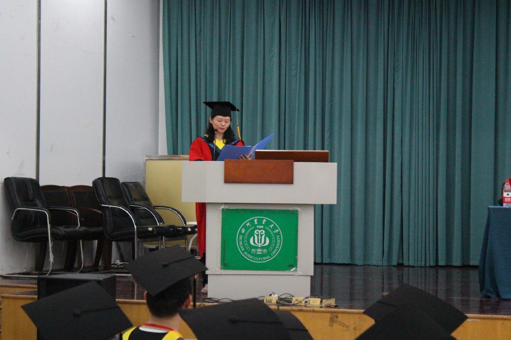 毕业典礼在庄严的国歌声中开始,刘菲院长致辞。他首先代表全院教职工、学生向圆满完成学业的2018届毕业生表示热烈的祝贺,号召同学们对关心支持大家成长成才默默付出的全院教职员工、学生家长们表示衷心的感谢。他总结了2018届毕业生取得的突出成绩,对同学们与开元体育官方网站登录入口一道成长深表欣慰。对于即将带着理想奔赴新的岗位、面临人生新的起点和希望的毕业生们,刘菲院长提出了两点希望:一是“奋斗”。幸福都是奋斗出来的。我们正处于智能时代风云激荡、信息科学技术大变革的时代风口,信息科学是一项创新的领域,唯有奋斗才能将梦想化为新的现实。不奋斗必将被知识和行业所抛弃,四川农业大学110周年的发展史本身就是一段顽强英勇的奋斗历程。不奋斗,不川农。二是“坚持”。一颗小树苗长成苍天大树,很重要的一点在于“它不动”,“不畏浮云遮望眼”,“守得云开见月明”。他希望各位毕业生在新的生活和工作当中继续传承和发扬“爱国敬业、艰苦奋斗、团结拼搏、求实创新”的川农大精神,“德信立人,以工成事”,“勤学修身,笃行创新”。