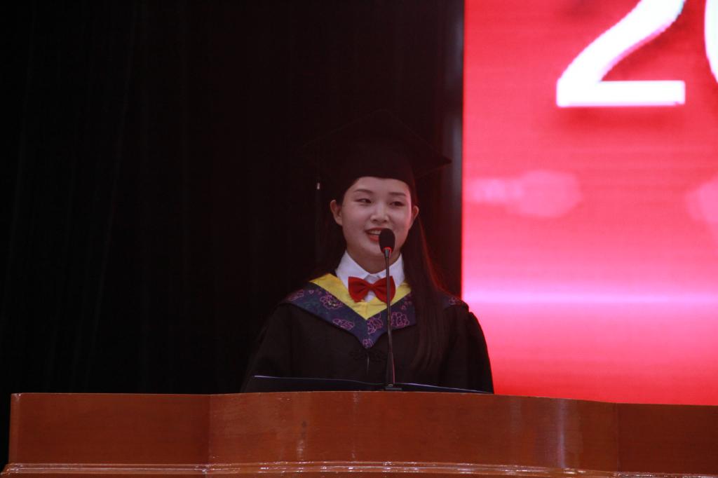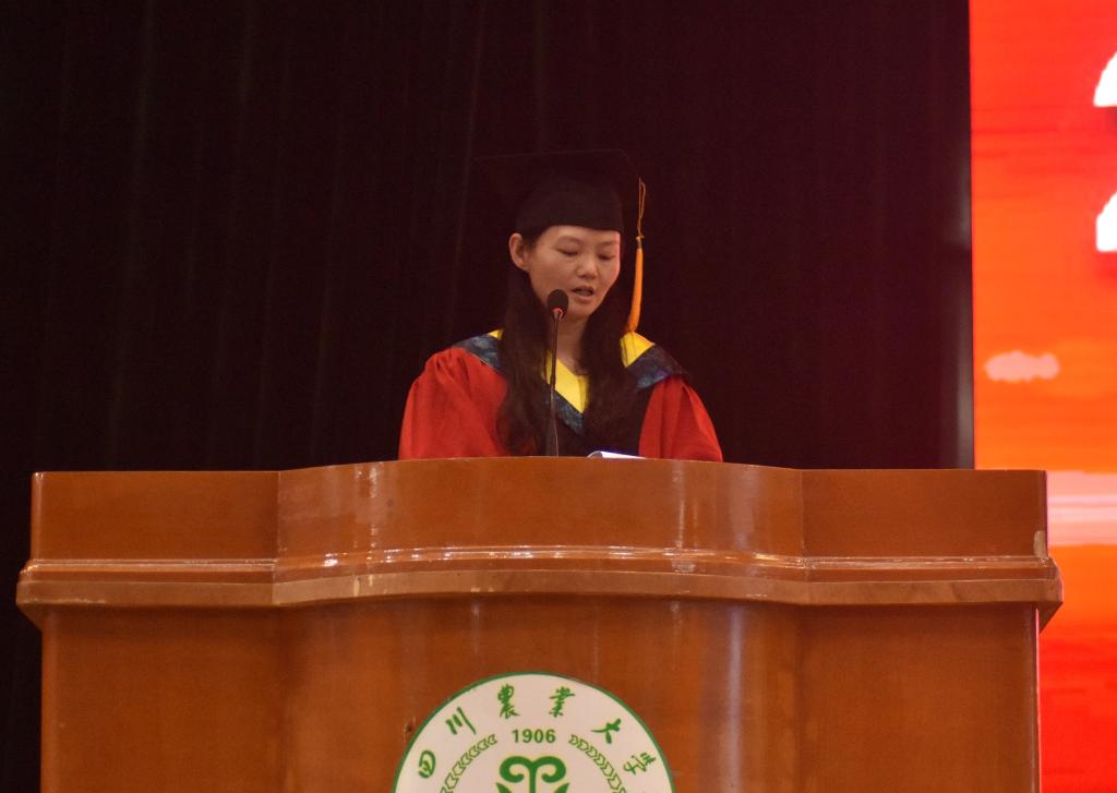 省级优秀大学毕业生、第六届学生会副主席黄曦同学代表全体毕业生发言,她回忆了大学的青葱岁月,对辛勤付出的老师们表示了感谢;“冀以尘雾之微补益山海,萤烛末光增辉日月”,对于未来,她将牢记川农大校训,发扬“川农大精神”,努力为祖国的建设发展贡献自己的力量。