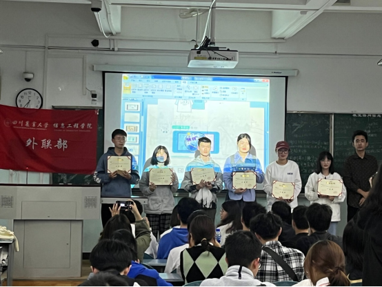最后在同学们一片热烈的掌声中阿迪力江·尔斯郎老师为一等奖获得者计算机202201,二等奖获得者大数据202203和大数据202202以及三等奖获得者大数据202204、大数据202201和物联网202201颁发了获奖证书并宣告了此次活动圆满结束。