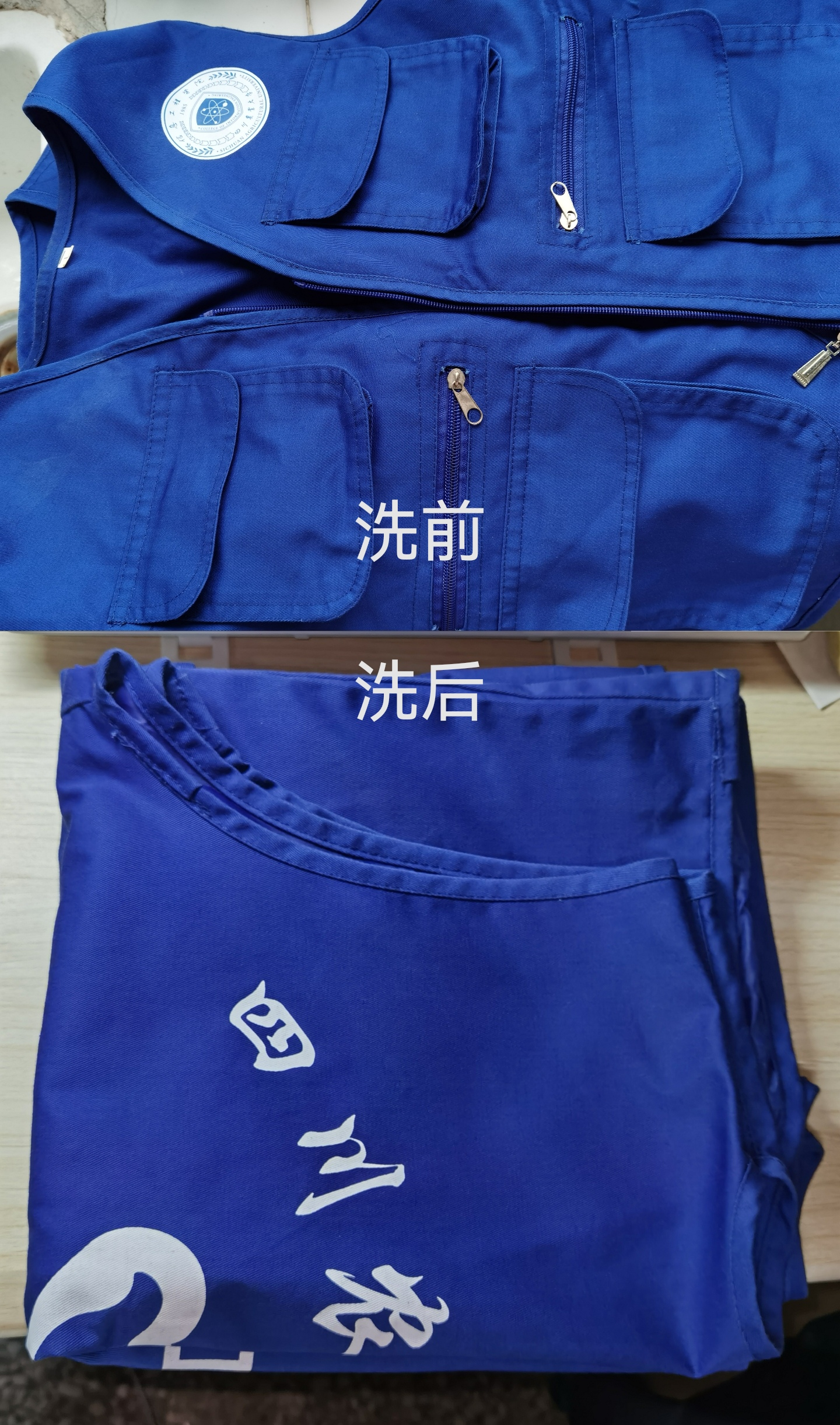 图1 马甲清洗前后对比图