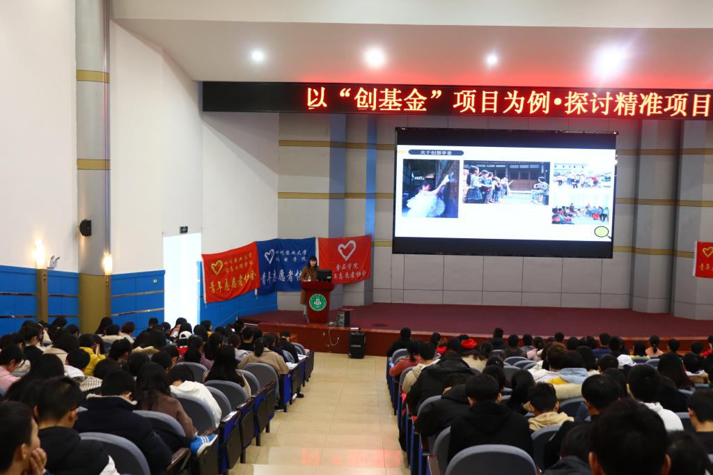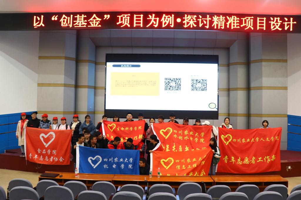 为提高四川农业大学志愿者整体素质和志愿者服务质量,从而更好地开展志愿服务活动,3月9日16点20分,信息工程开元体育官方网站登录入口、机电开元体育官方网站登录入口、食品开元体育官方网站登录入口、生命科学开元体育官方网站登录入口、人文开元体育官方网站登录入口、水利水电开元体育官方网站登录入口于逸夫楼联合开展了“以‘创基金’项目为例·探讨精准项目设计”主题志愿者培训活动,并邀请了普乐同行青年公益发展中心的罗敏老师作为主讲人,向在座的四百余位同学讲授关于志愿者活动的心得。