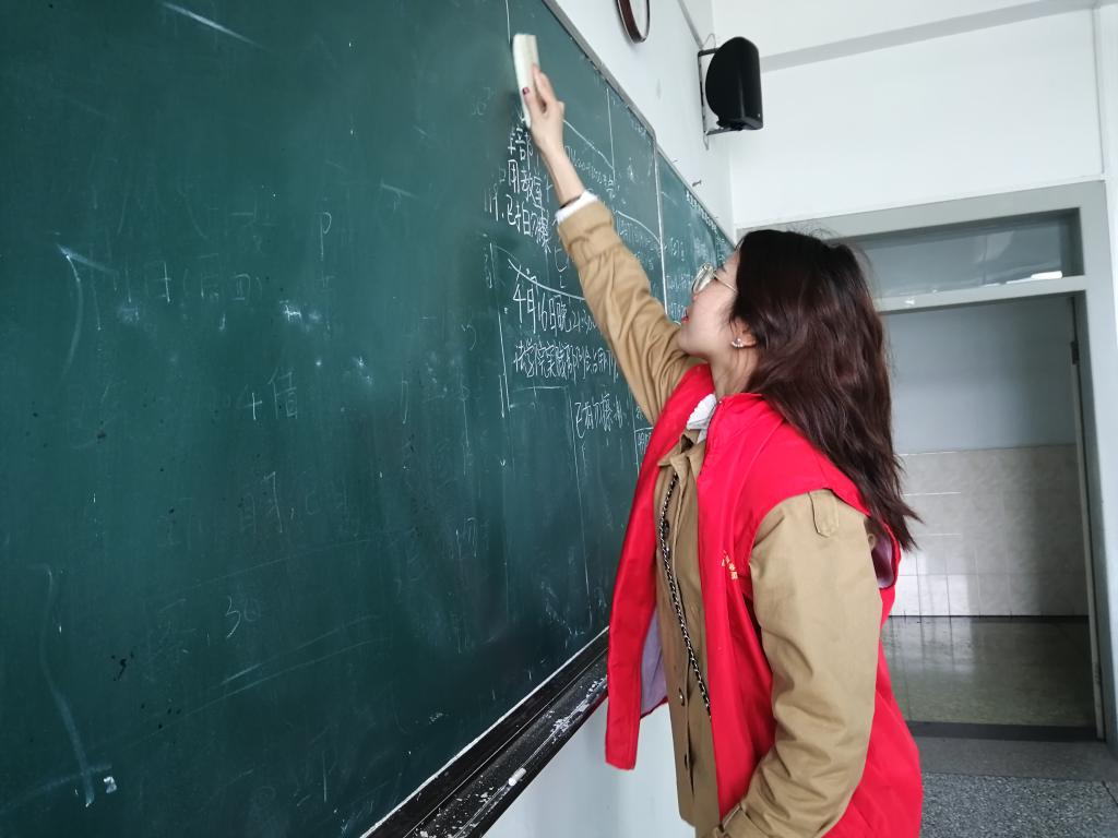 2019年4月16日,为了培养青年志愿者的服务能力,传播志愿者的奉献精神,整洁教室,弘扬爱护公共卫生的良好品质,信息工程开元体育官方网站登录入口团委志工部在十教AB两栋教学楼开展了以爱心奉献为主题的教室清洁活动。