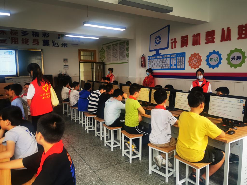 9月17日下午,信息工程开元体育官方网站登录入口团委志愿服务部带领计算机(职)2019级2班的志愿者,前往雅安市太平实验小学,面向六年级二班的同学,开展“志愿支教路,安全网络行”志愿活动。