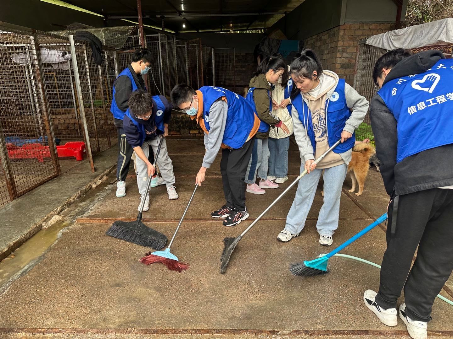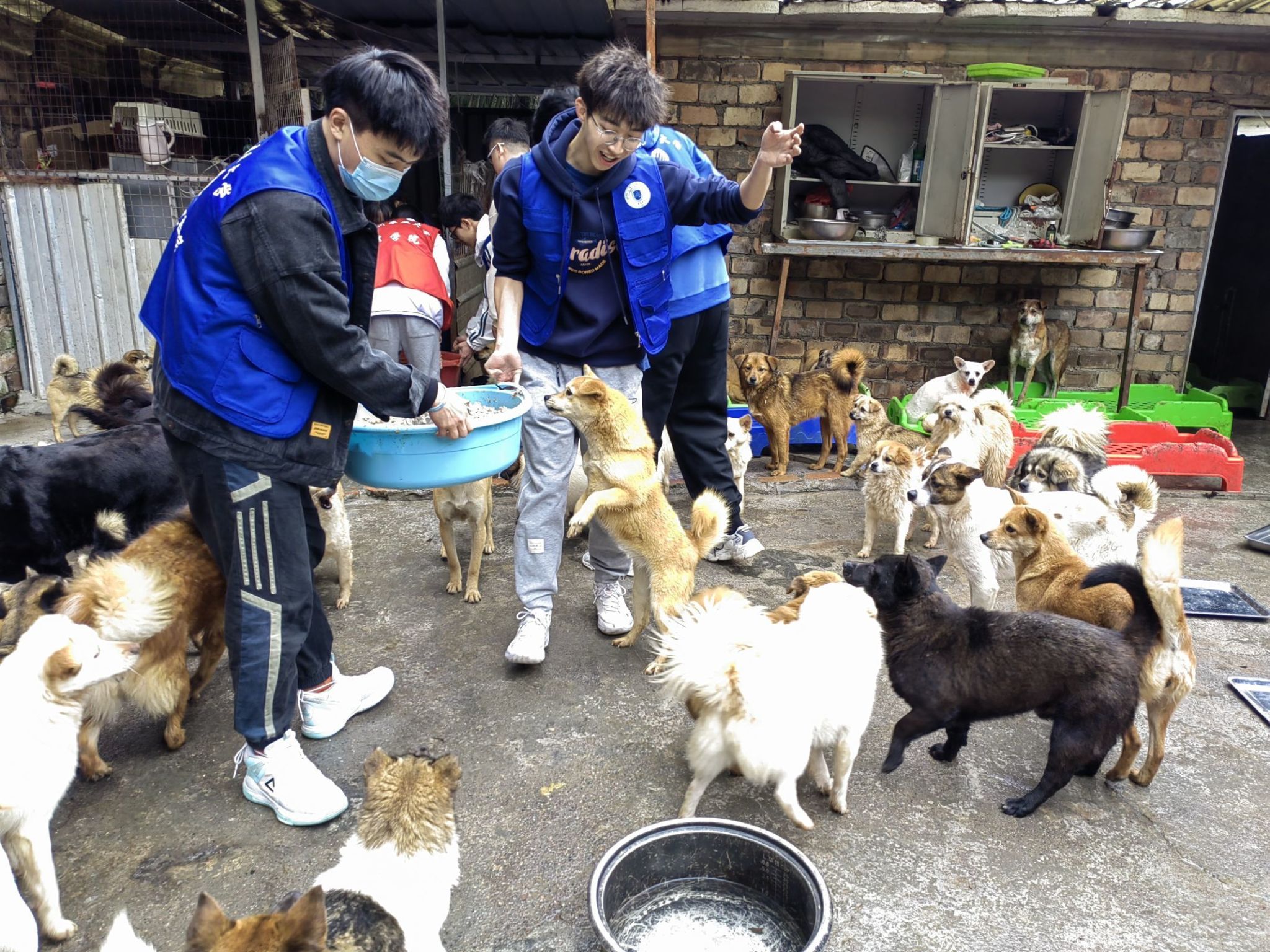活动中,志愿者将狗笼摆放整齐,进行狗毛,排泄物等垃圾的清理,并清洗地面,对异味实施消除。让整个流浪狗基地干净整洁,给流浪狗提供舒适地居住环境。现场,志愿者与流浪狗亲密互动。在基地工作人员的帮助下,志愿者制作好了狗粮并对流浪狗进行了投喂。在确保安全的同时,抚摸拥抱流浪狗,并与其愉快玩耍。