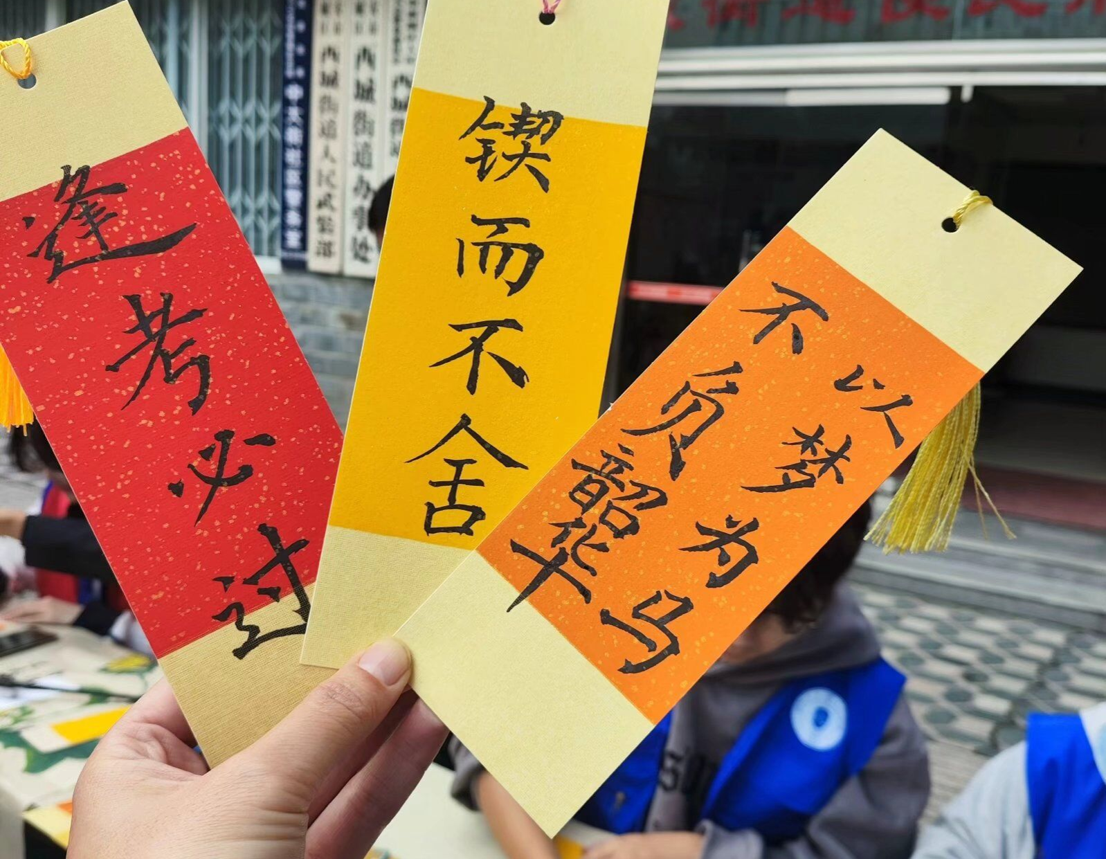 有的老人选择了“吉祥如意”等内容制作书签,为家中亲人和自己求得个好兆头;有的老人选择了“常乐平安”等内容书写于书签之上,体现出老人积极的生活态度和美满的生活状态;还有的老人选择了“锲而不舍”等内容的书签赠予家中的小孩,希望他们能刻苦学习,传递了长辈对后辈的关怀与殷切希望。“这些川农娃娃写得真好,一笔一划都是有考究的,肯定用心练过,收到这样的书签心里别提多开心。”现场的一位爷爷如是说。