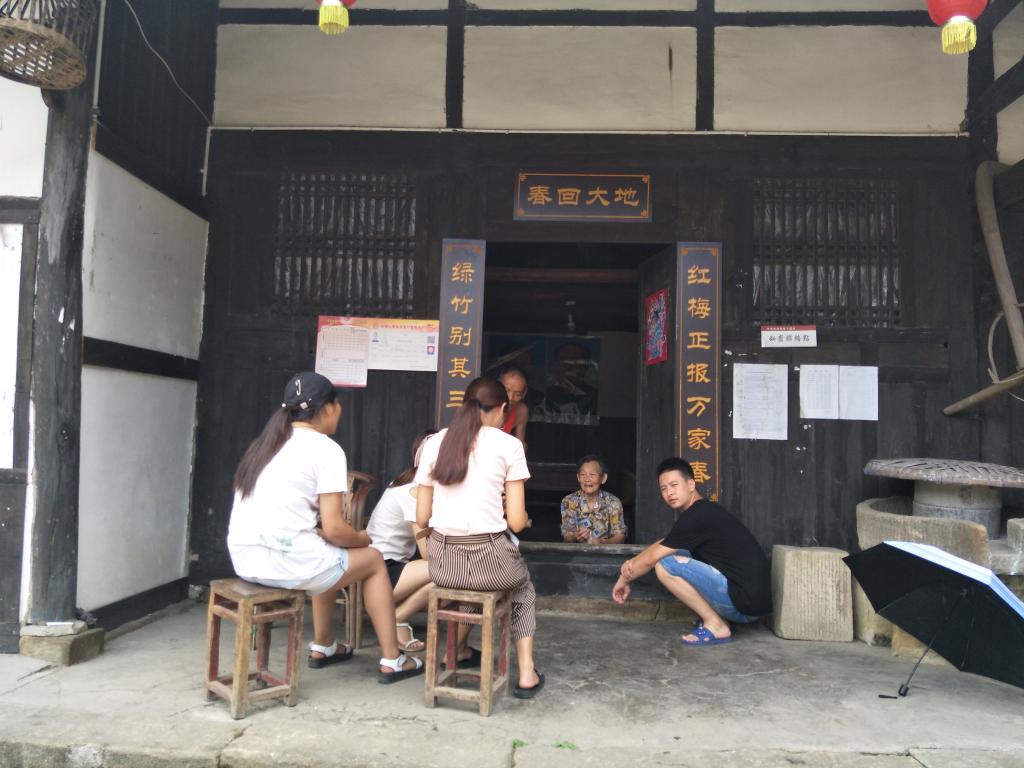 社会实践人员与萧家大院老人交谈 蔡苗 摄